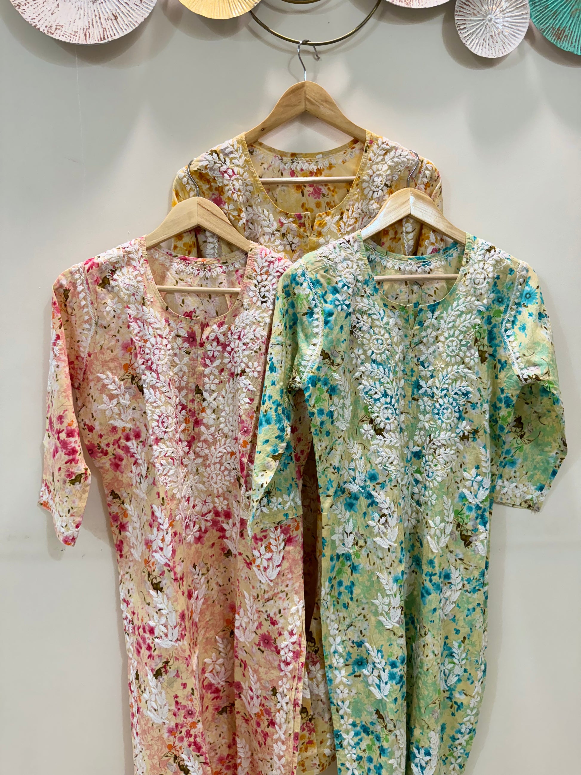 Printed floral chikankari kurti
